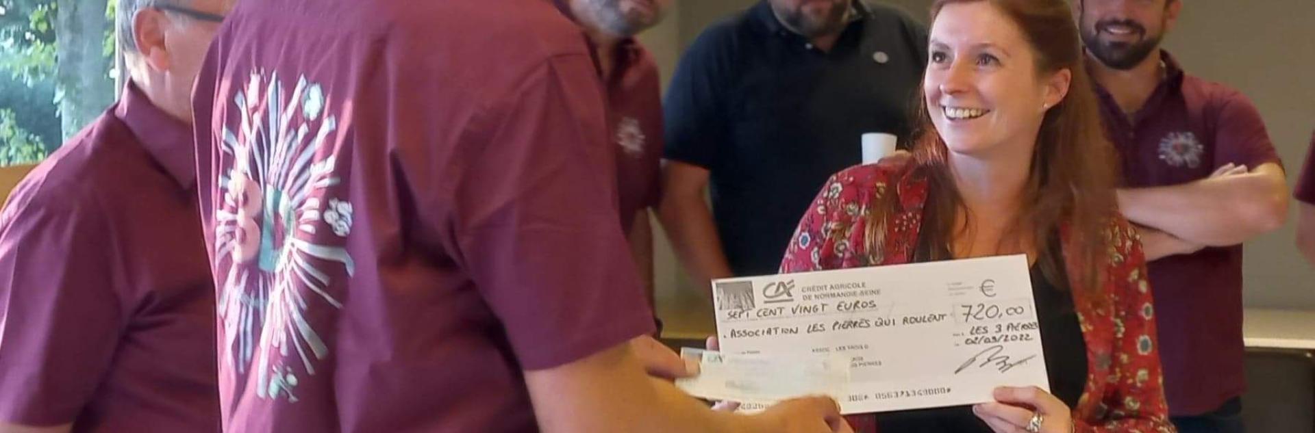 L'Association des 3D a remis un chèque de 720 euros à l'Association des Pierres Qui Roulent le vendredi 2 septembre dernier à l'occasion du pot de l'amitié de rentrée des 3D.