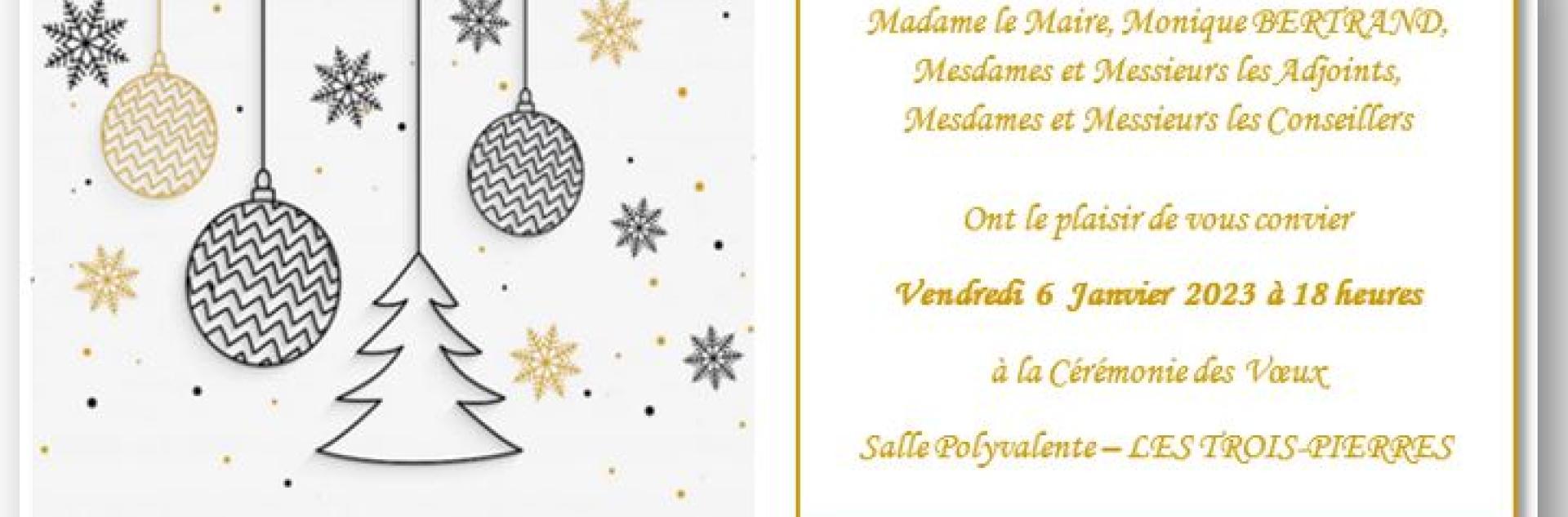 Mme le maire et son conseil municipal vous invitent à cette cérémonie le vendredi 6 janvier 2023 dès 18h00